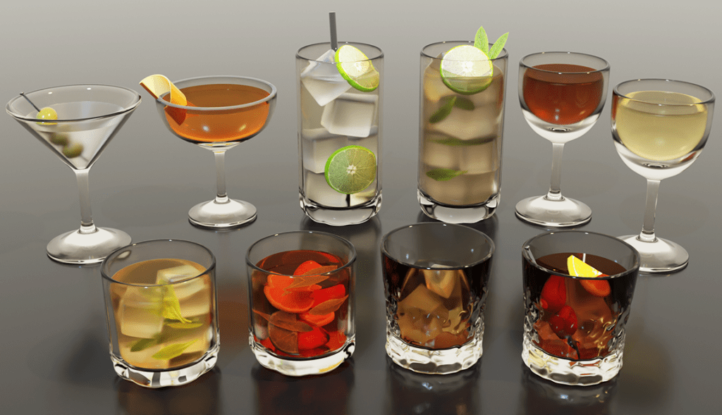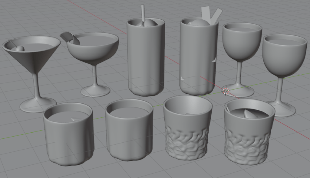 I’ve modelled a bunch of cocktails (for a game I’m making – I’ve made a post about it on patreon) I’ll render them separately, or in grid form, then cut out the background, then stylize them, in this case I’ll pixelate them.